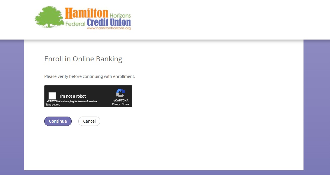 3. The following screen will be displayed for you to complete the reCAPTCHA process, then click Continue.